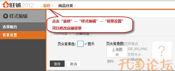 樂創(chuàng)教程針對新旺鋪如何進(jìn)行“背景修改”,請參照下圖步驟:點(diǎn)擊”裝修“--”樣式編輯“--&r...